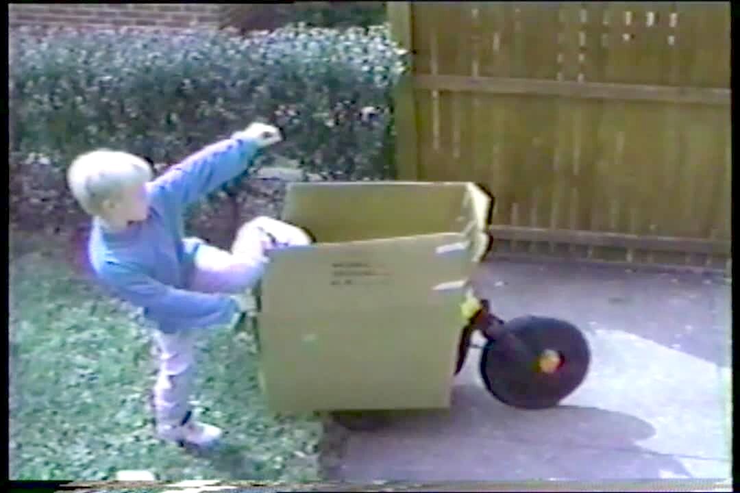 Hvl2024 Fall Tumble Outside Ring Yard Fail Drop Home House Balance Outdoor Lawn Accident Wipeout Oops Mistake Chore Clean Cardboard Unboxing Recycle