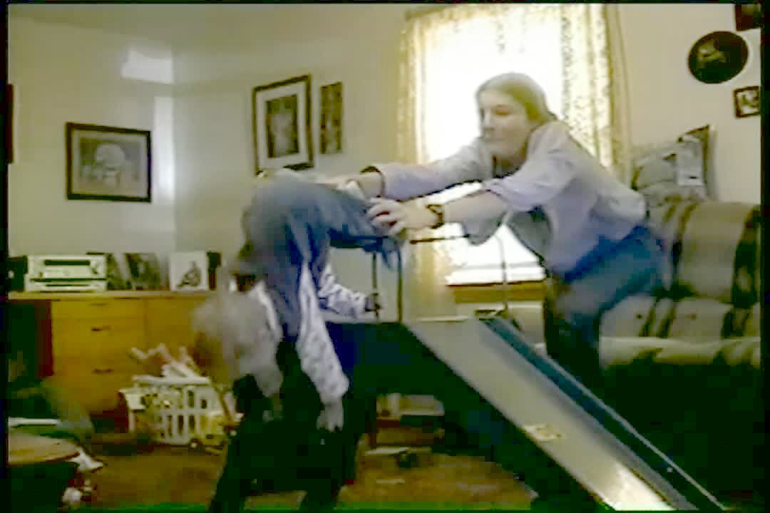 Tot girl breaks toy slide and falls hard. *no tail