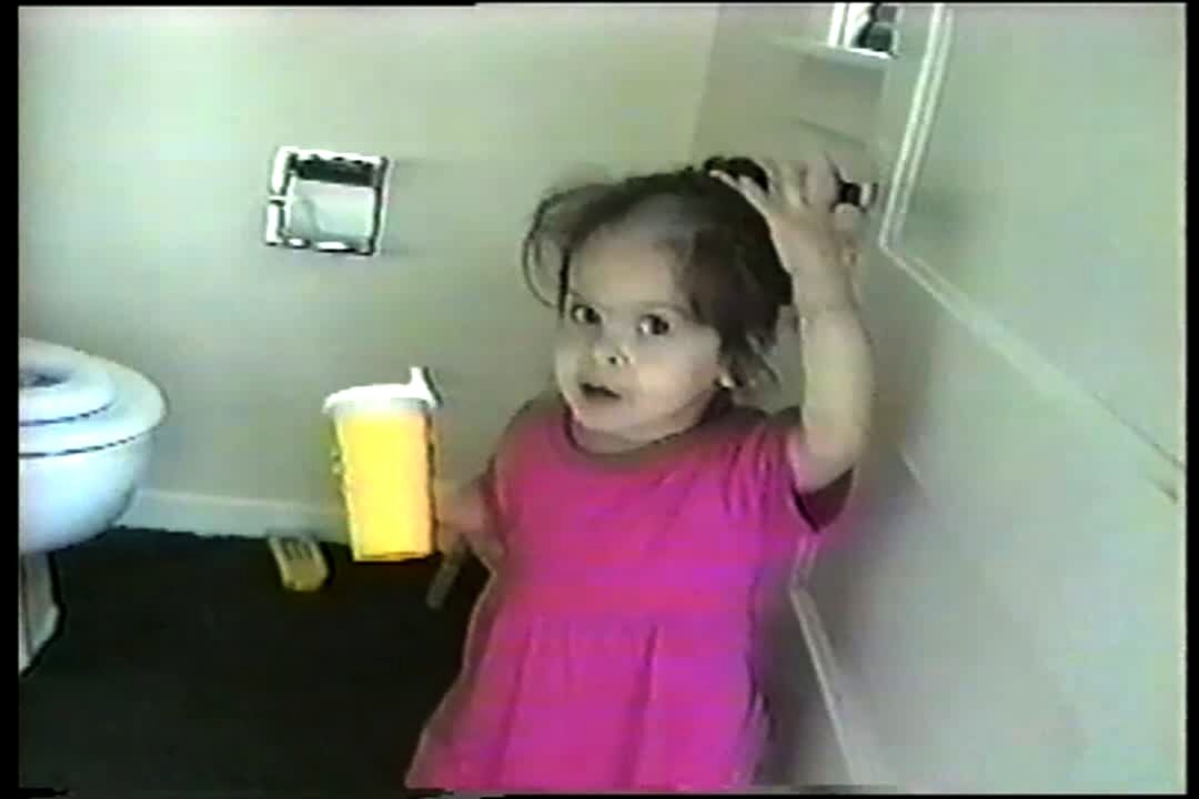 AA -- Haircut: Young girl (2) shaves half her hair off, hides clippers in drawer (still on), she's happy, Mom is shocked