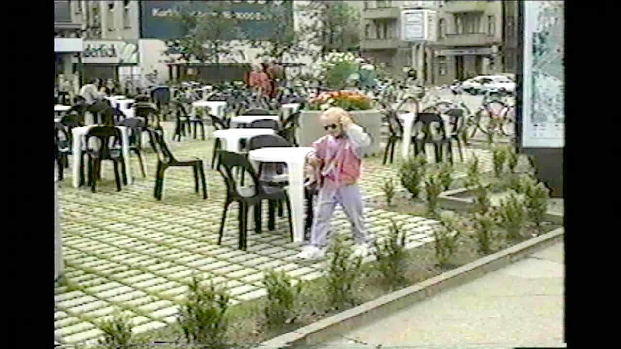 A woman pole dances along with a song and the pole falls down. The woman's son enters the room to check on her and his mother tells him to "get out." Music rights not cleared.