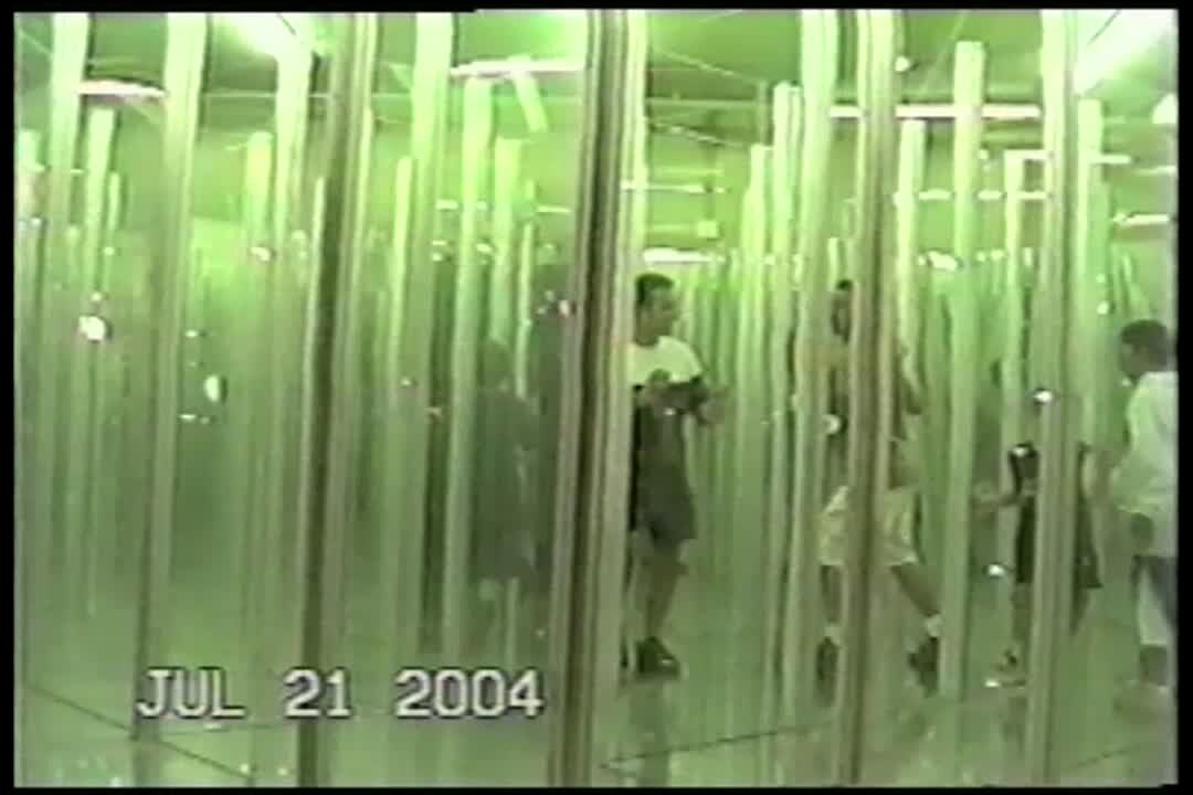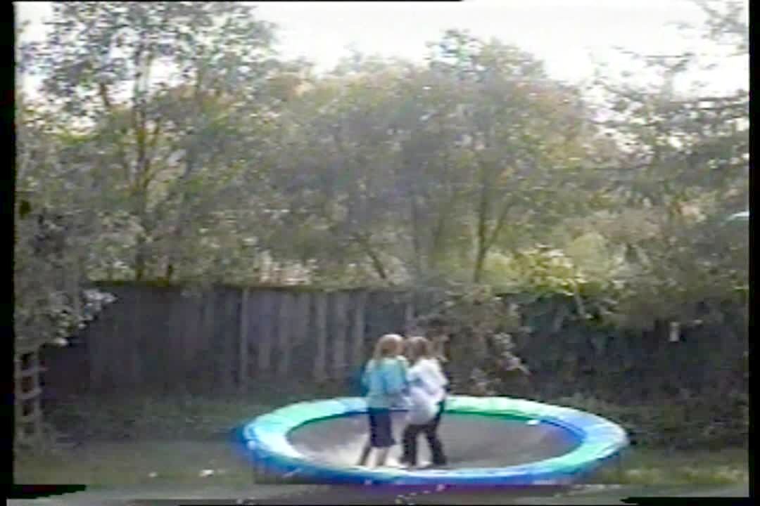 Start at 1:53. A teen girl dunks a basketball and swings back on the rim, knocking her friend off of a scooter.