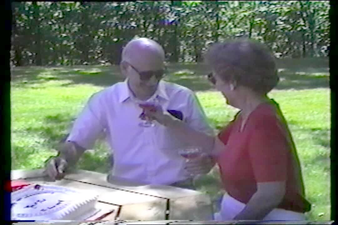 AA: Wishes. Old lady (2nd woman) is asked to make wedding wish, is confused by microphone says "what's this?"