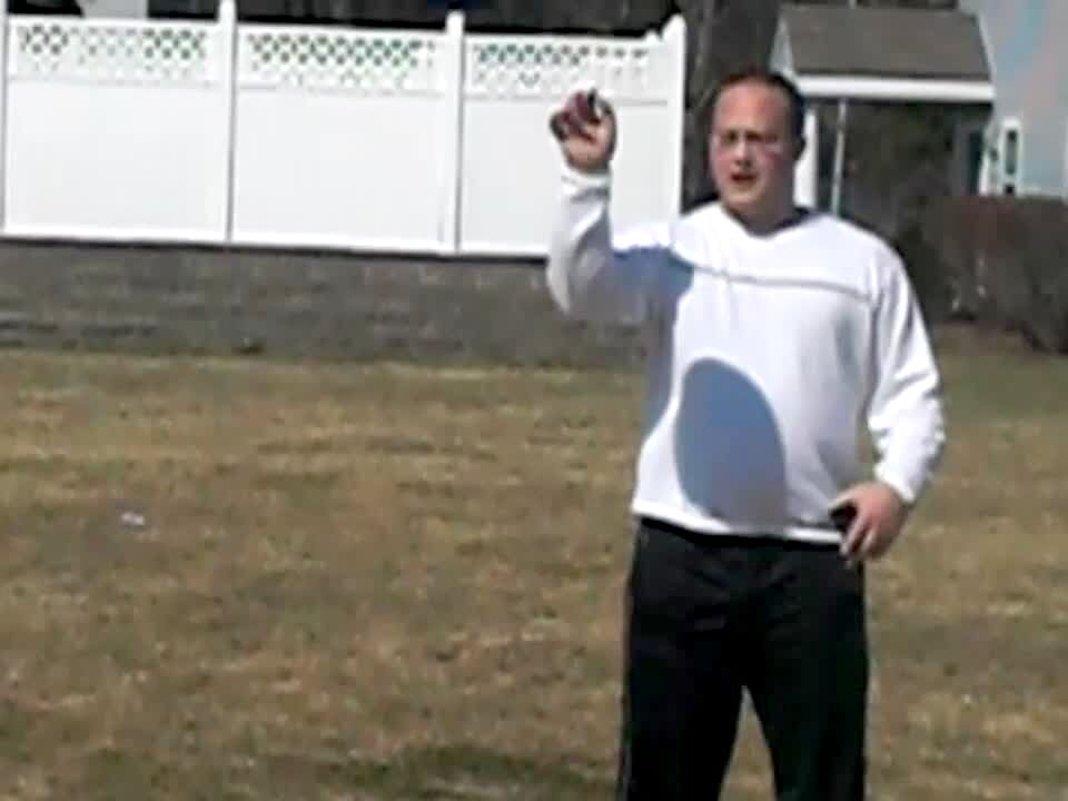 Boy flies remote control plane right into dad's arm. Good hit, no tail