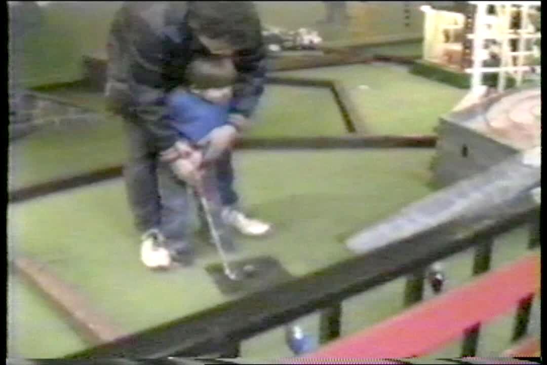 Dad's mini-golf shot ricochets into his pocket