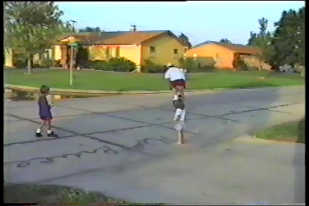 Dad falls doing wheelie on kid's bike