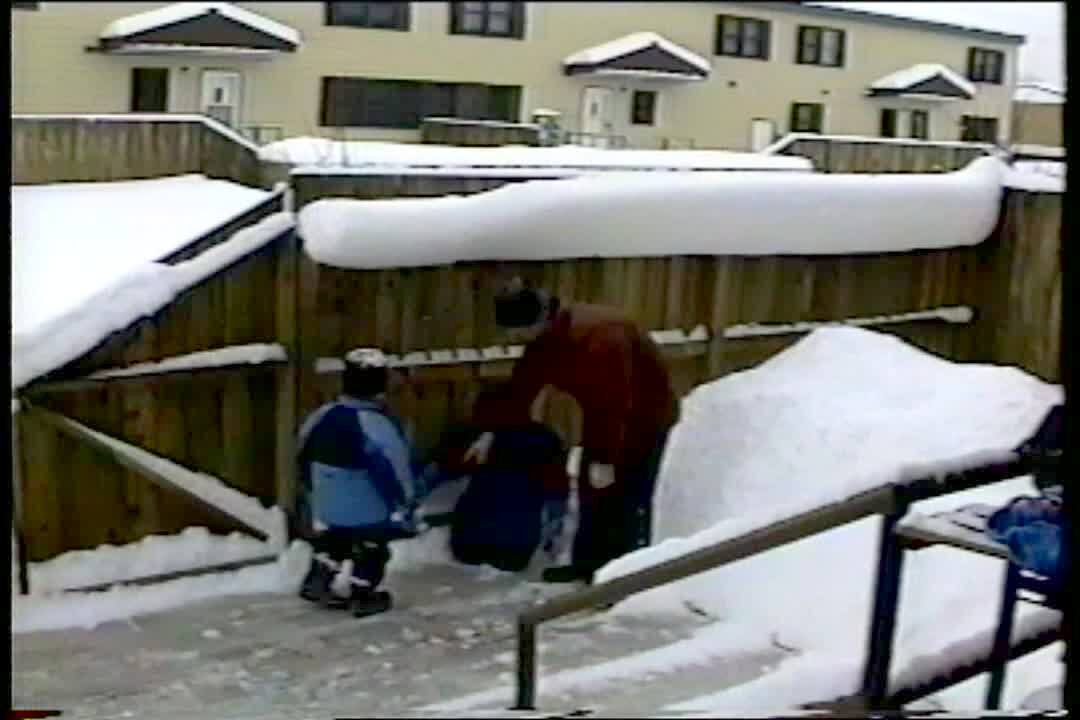 Practical joke - Dad hits fence with shovel, causing snow avalanche on kids