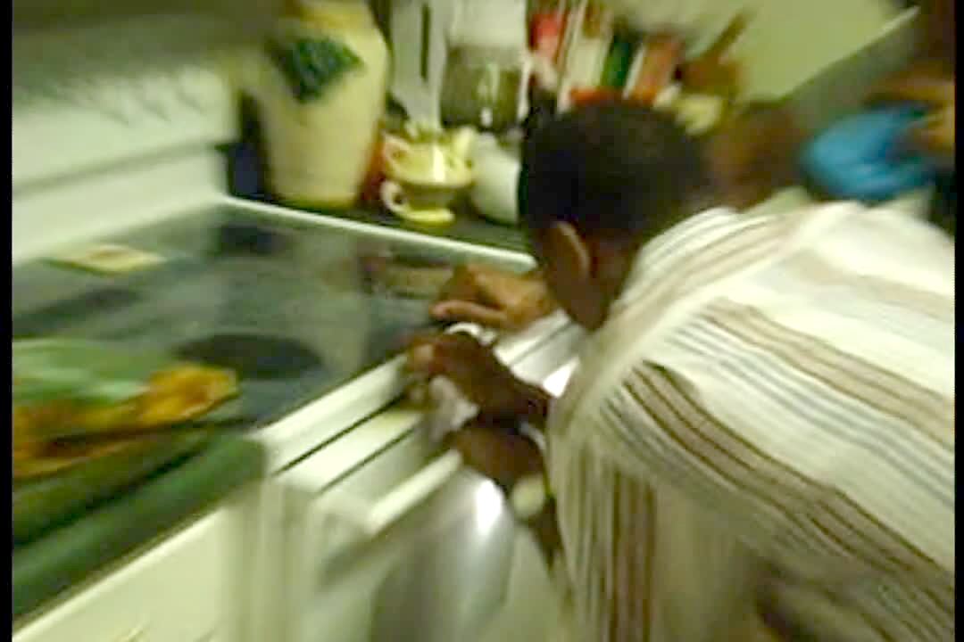 Tot boy wants cookie, parents tell him not yet. Boy steals / takes a cookie in his mouth & runs away, dad catches him on hidden camera. Denies he took cookie. Sneaky.