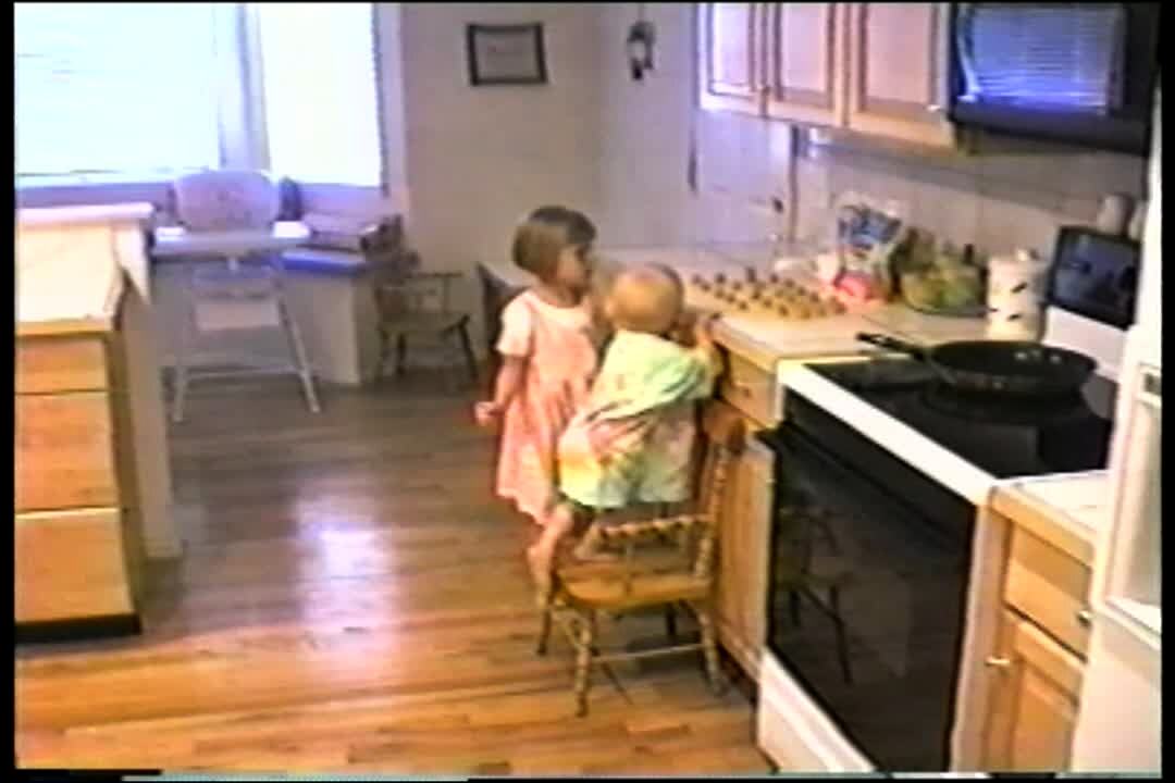A tot girl prepares a cup of hot chocolate by scooping out powder and she tells her mom that she just uses two scoops of the powder but in reality, she scoops multiple scoops and fills the cup halfway with powder, then takes a bite of one of the spoonfuls and spits it out with a mouth full of chocolate. Her brother laughs at her before she opens the can of powder and scoops more into the mug.