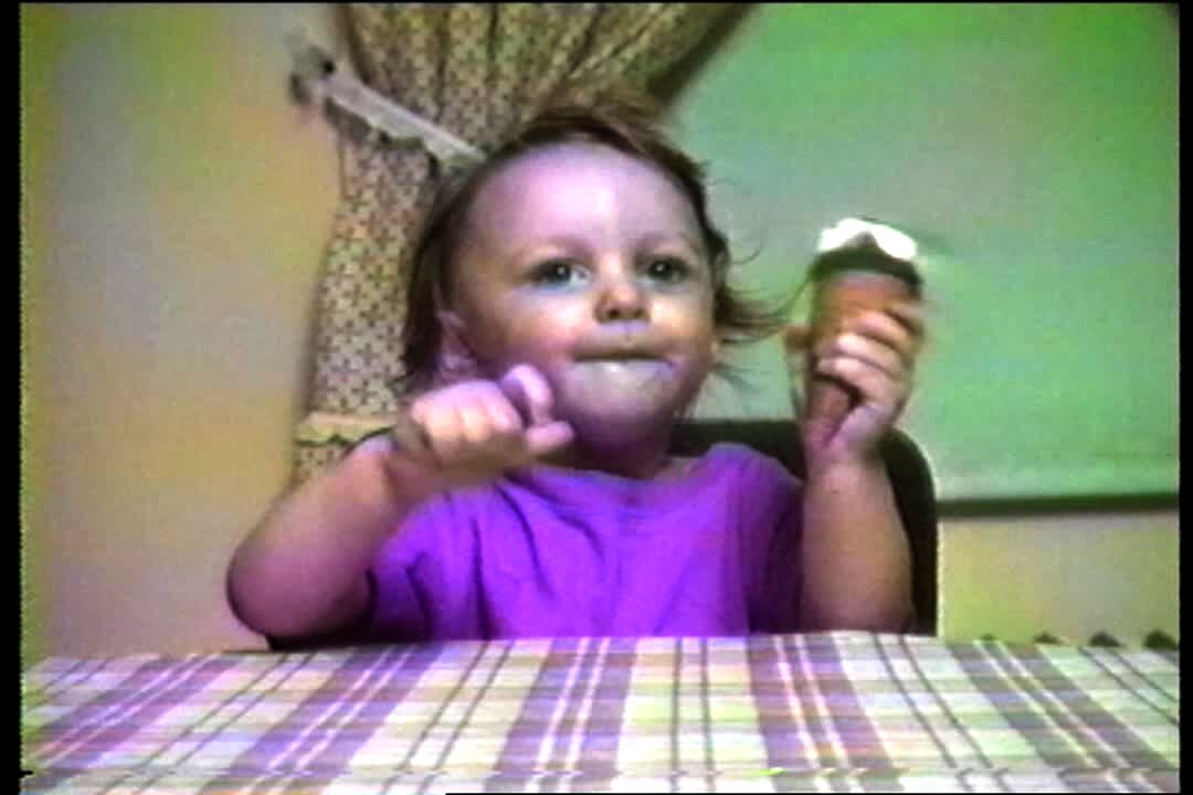 "Dreaming of Ice Cream" Tot boy sleeping in car seat wakes and screams "ice cream" when dad says "who wants to go to McDonalds," then immediately falls back to sleep. Does it several times. Excited