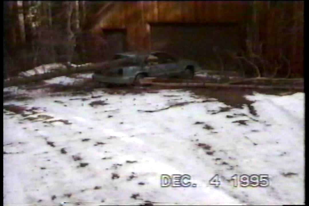 A.A. Destroy a snowman Young men runs snow man over with a car. They do it again filming from inside the car and break the windshield. Dent the top of the car.
