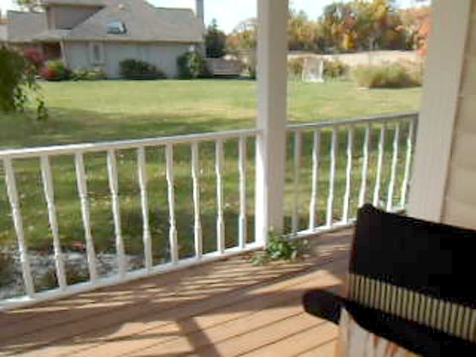 A woman turns on a vacuum cleaner indoors and a scared puppy dog crawls through a bannister and runs upstairs.