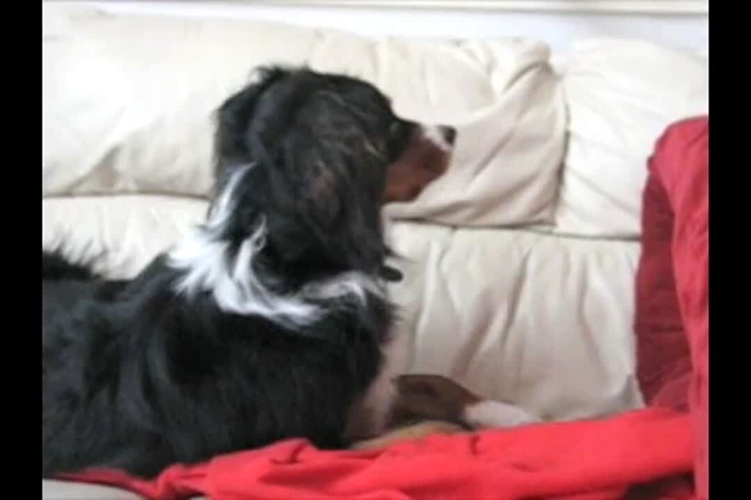 Little brown dog stands/walks on hind legs in living room. Cute. (Best part before 0:30)