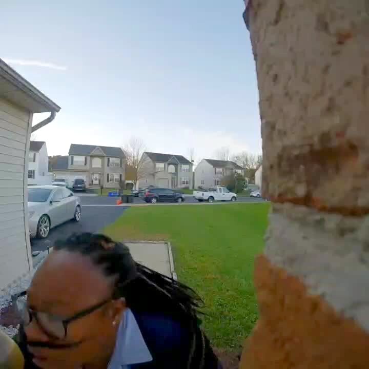 A teen boy walks out the front door early in the morning and falls down ring.com doorbell camera.