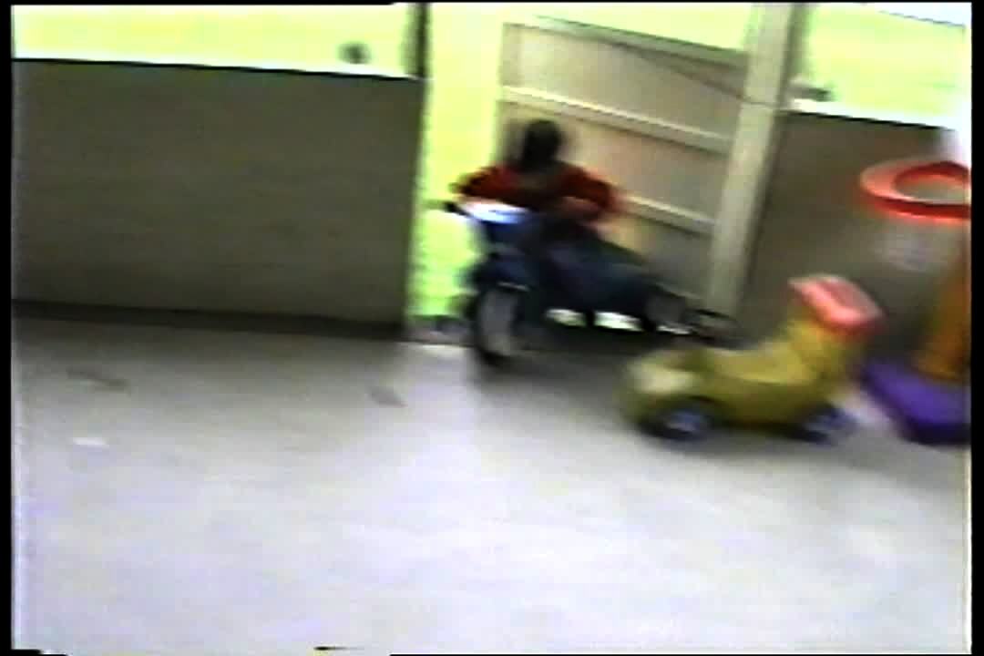 "Road Rage Rascal" A tot boy and his a tot girl drive in a power wheels car outdoors and it gets stuck on a curb. The boy gets out of the car and kicks the car repeatedly from behind but is unable to get the car out of the curb, even with the help of a woman and another boy.