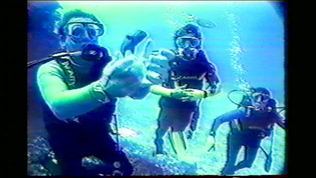 AA: Egg cracking Scuba diving guy cracks egg, fish eats the yolk