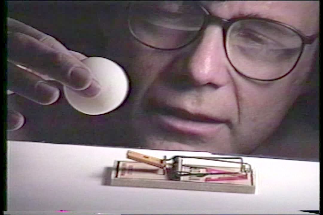 AA: Egg Crack. Man breaks egg in mouse trap.