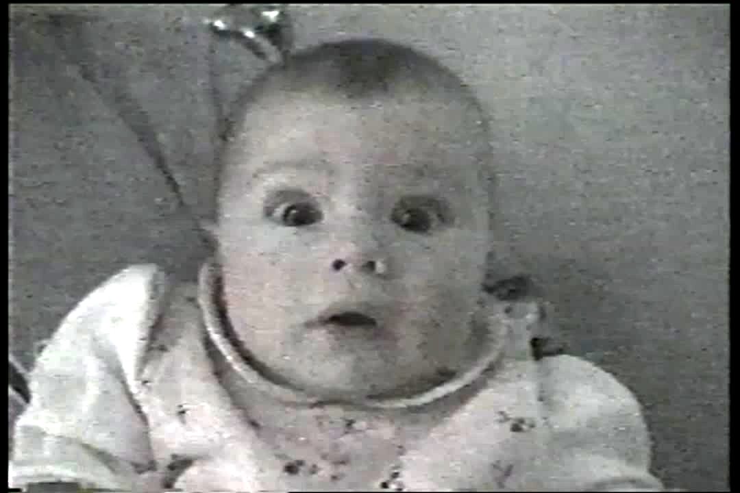 Kid (girl) walks into camera, hits lens, makes weird face.