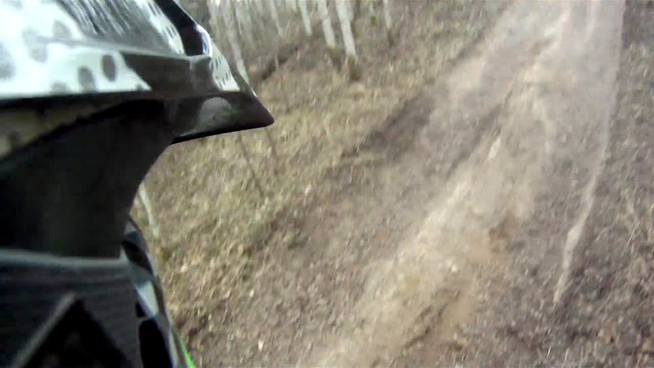 A young man rides an ATV in a field and runs over the the man who records the video.