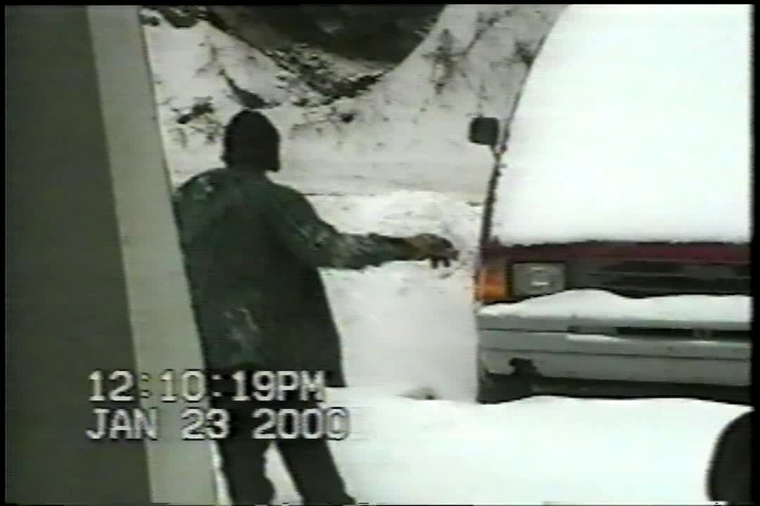 Boy falls in the snow while shoveling
