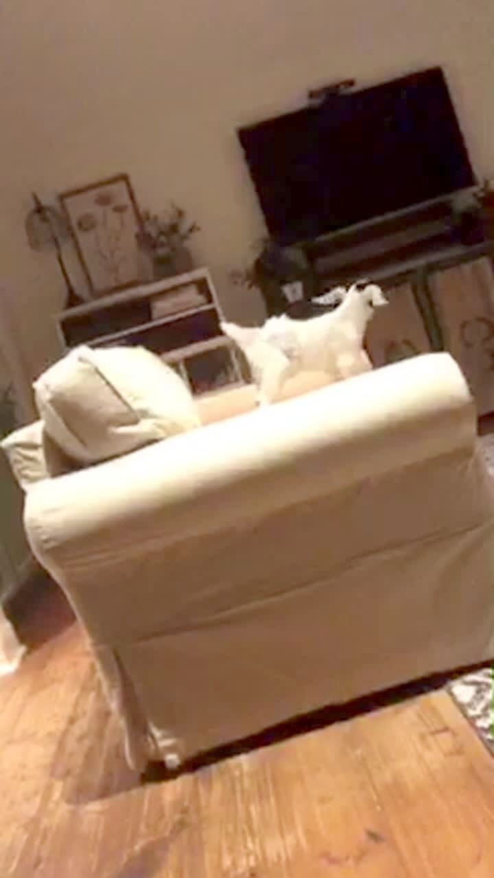 A teen boy in a living room screams because he has a squirrel on his back and he squirms and screams as the squirrel crawls over him. The squirrel jumps off and the teen boy is still afraid and thinks it is still on him.