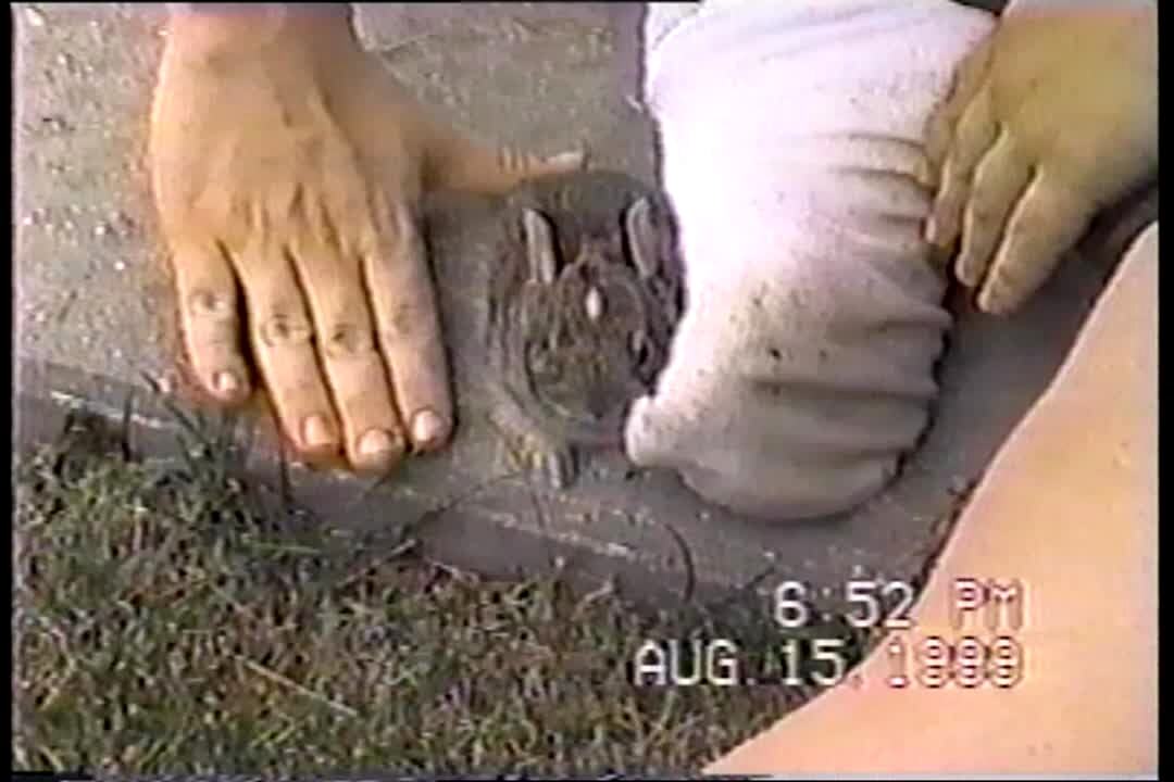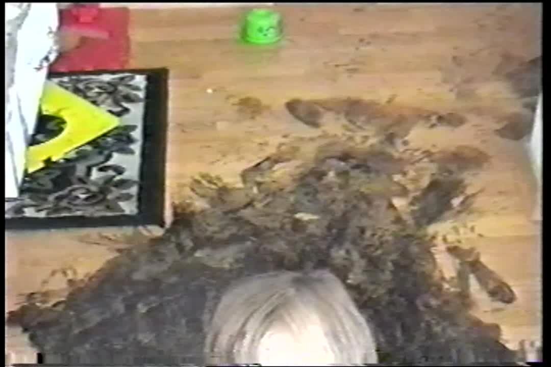 Man puts a rubber band around sink sprayer & get daughter to turn it on. She screams & whines off-camera. Practical joke.