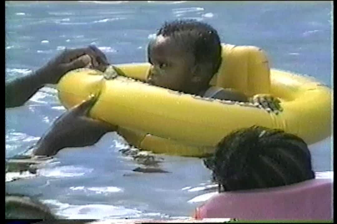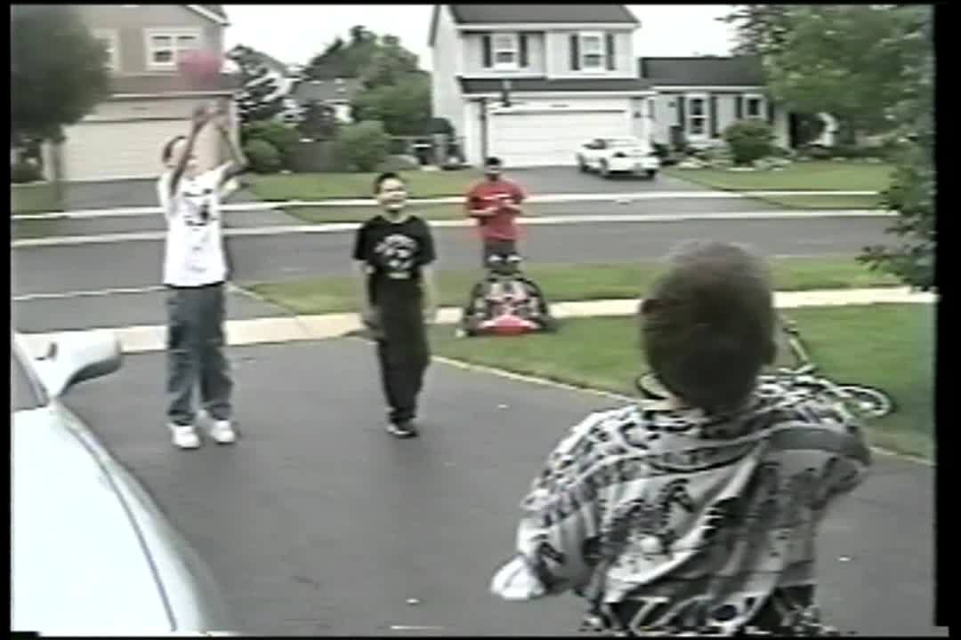 Man kicks giant beach ball to a girl, she catches it. Man kicks it to young boy who gets knocked over by it. Falls down. BAD TRACKING ON SOURCE. Before the hit, mom even says the video will be worth $10,000.