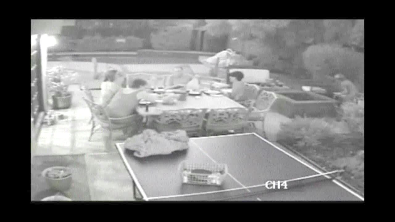 Security camera footage of a kid boy lighting a flame in a fire pit that engulfs his head at :35.