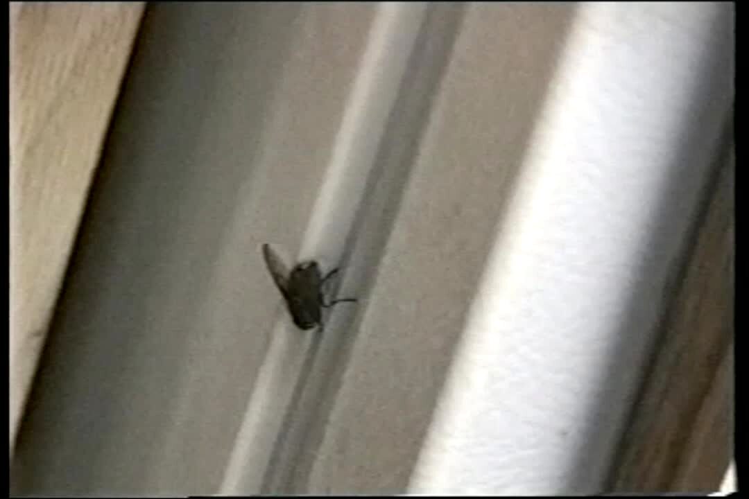 "Fly In The Fridge" Big fly has one leg caught in refrigerator door. It rips its own leg off and flies away.