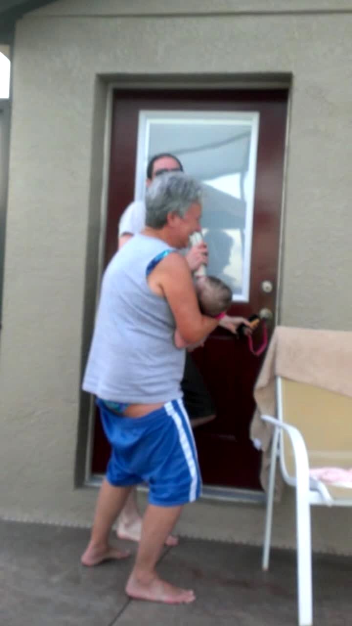 My husband loves to play tricks on people including using sticks or grass to make people think there are bugs on them. He was doing this to my dad one day so we got out the camera because he wasnt catching on he really thought a bug kept landing on him. He was smacking himself so hard. If you listen he actually says there is ringing in my ears afterwards! I told my husband you beat my dad up without laying a hand on him!