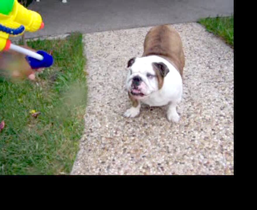 "Canine On The Couch" A man walks through his living room showing a gate to keep a dog away from the couch. As the camera pans up and around the room we see that the dog has made a bridge to get over the gate where the dog is laying comfortably on its back.
