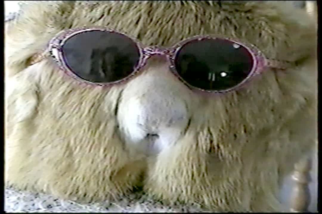 Cat has sunglasses on its tail. Its tail moves when touched.
