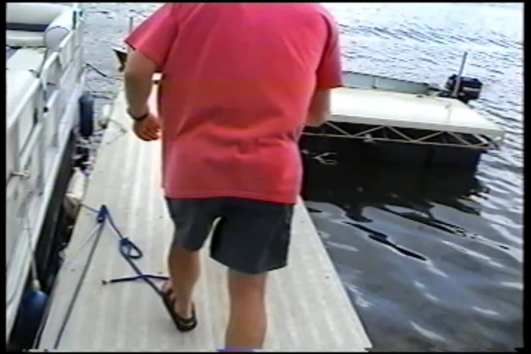 A dog goes on a walk with the man behind the camera, carrying his own leash. The man explains that this is his solution to the new leash law in town.
