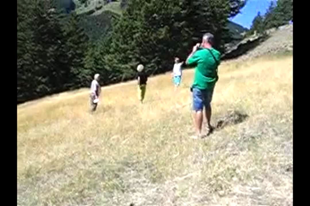 On a windy mountain, a man and a woman spread their grandparents' ashes. The woman throws a large handful of ashes into the air and they land all over the man. Other men and women walk around the mountain and watch.