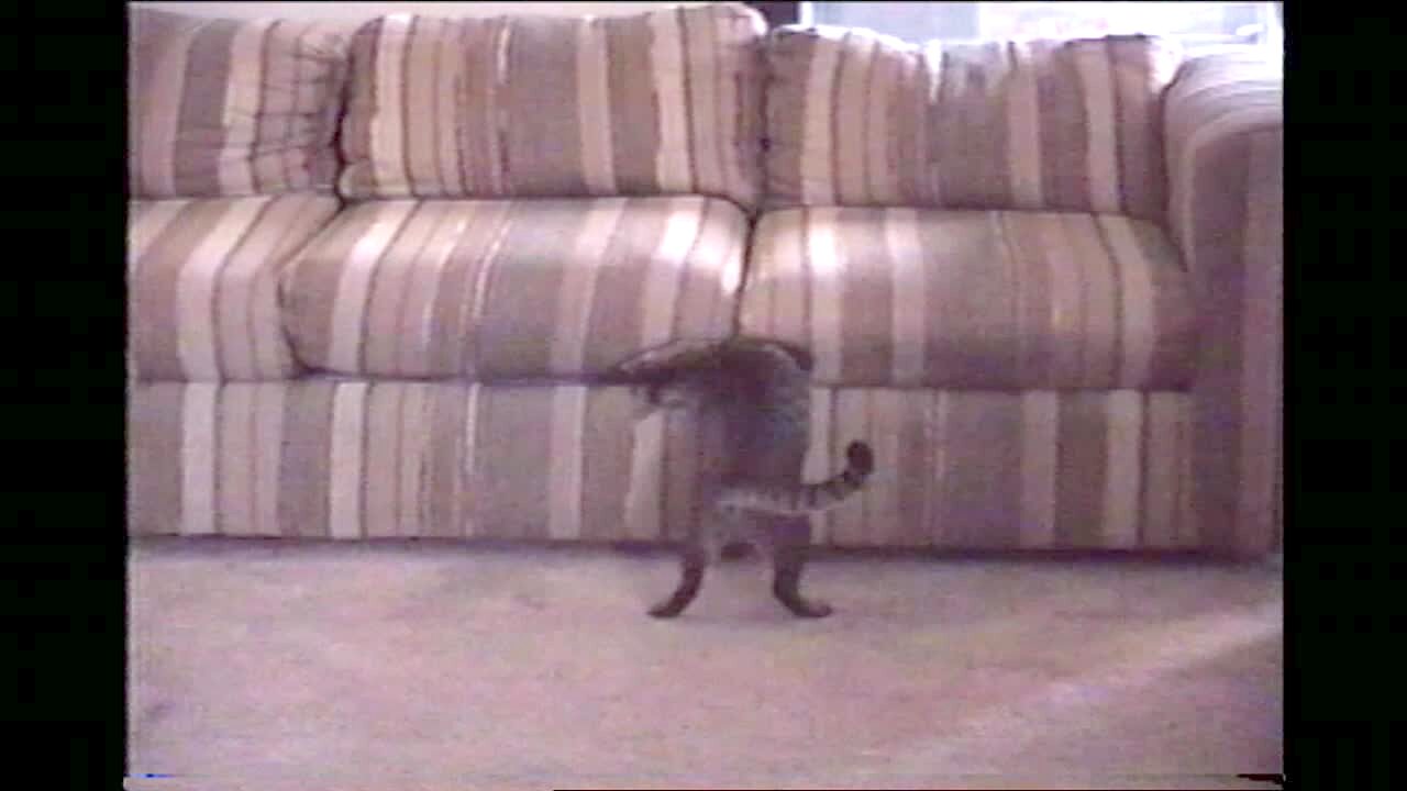 The woman behind camera looks for a possum under her bed before realizing it's right in front of her.