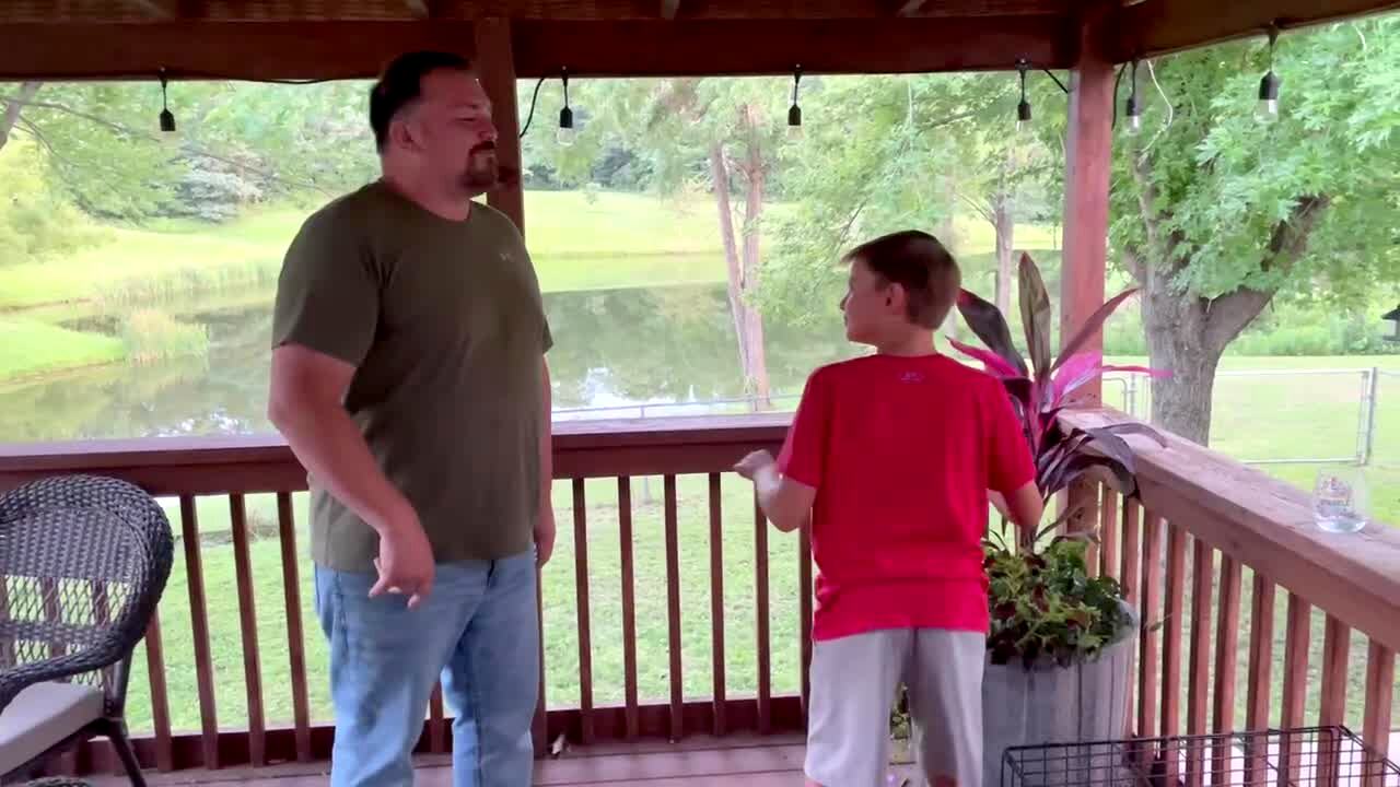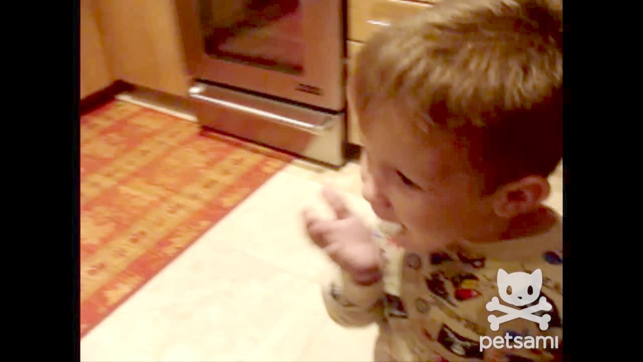 A man and a young boy perform the tortilla challenge, but at :31, the boy punches the man in the face.