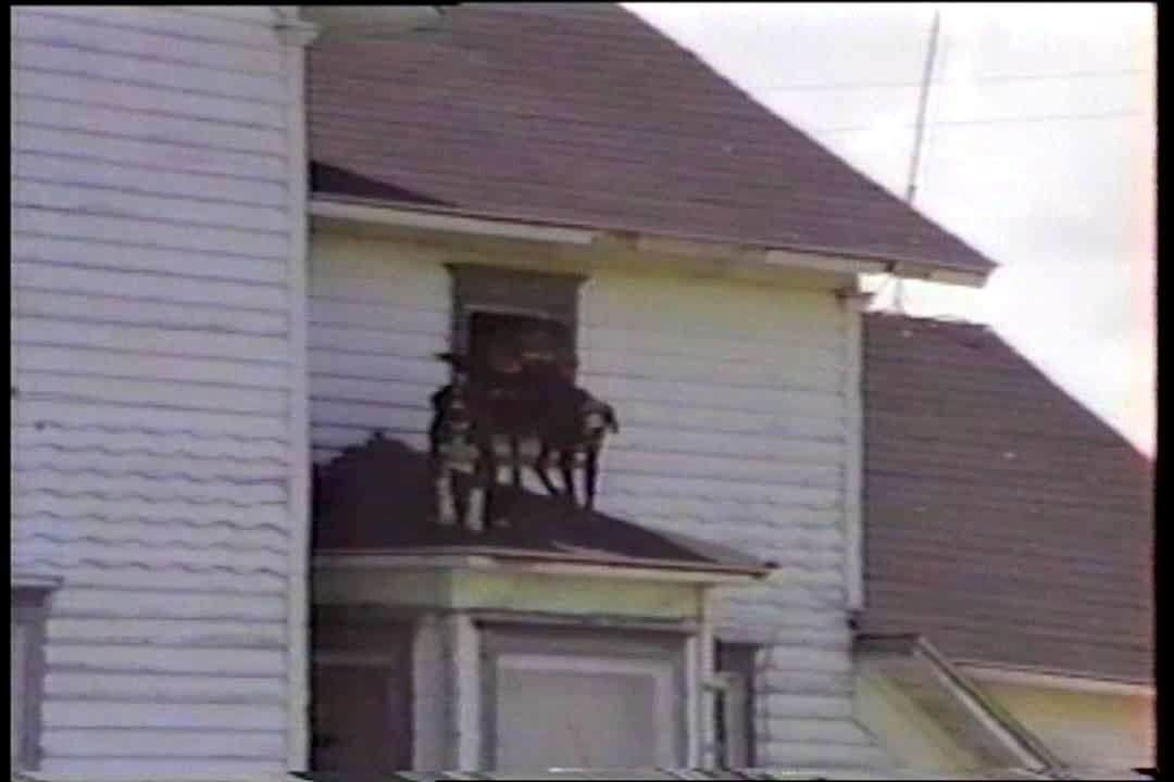 Dogs barking, camera reveals one actually on the roof.