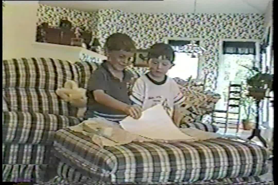 Two young boys learn they are going to Disney World on vacation. The scream, hug, are very excited.
