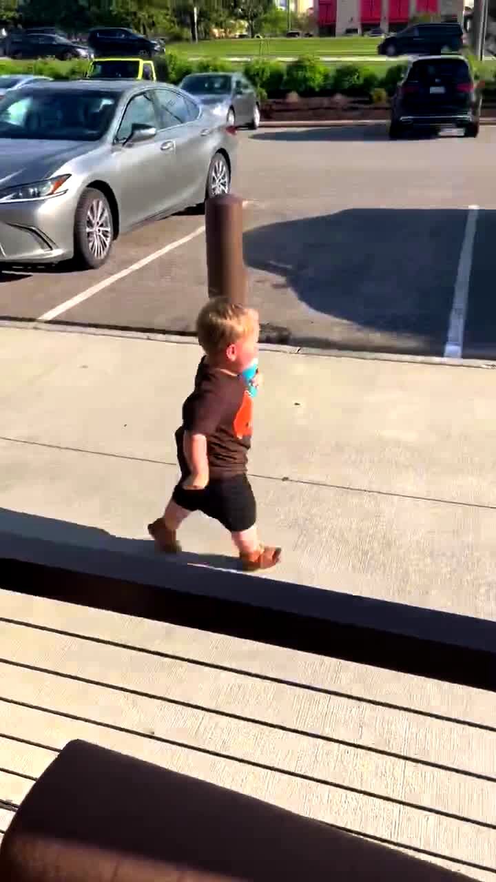 A little boy and a little girl reunite at an airport. They give each other a hug and after an awkward moment, the boy kisses her.