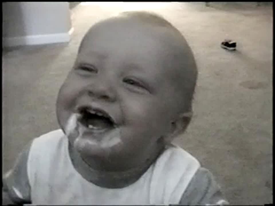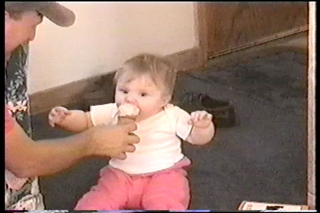Baby likes ice cream -- makes excited funny face and waves hands. cute (1518)