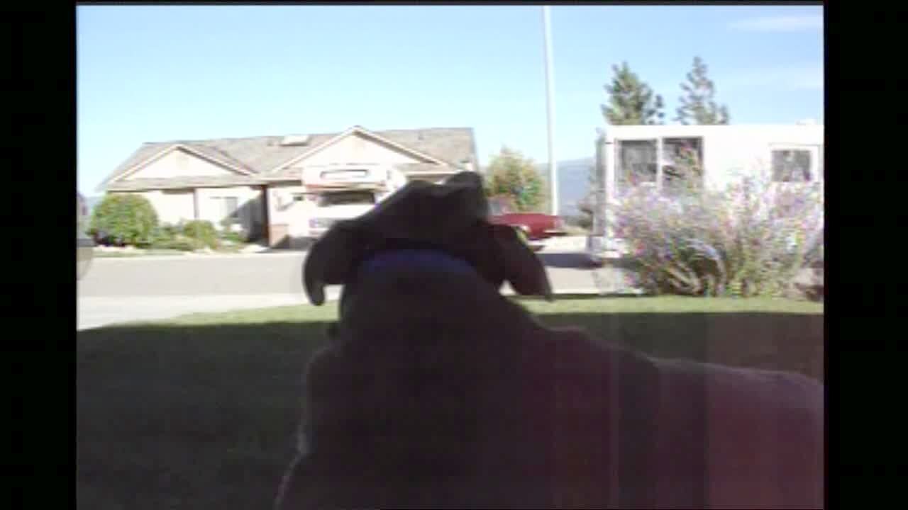Collie dog waits in the front yard for the ice cream truck. Barks and greets it, hops up for an ice cream.