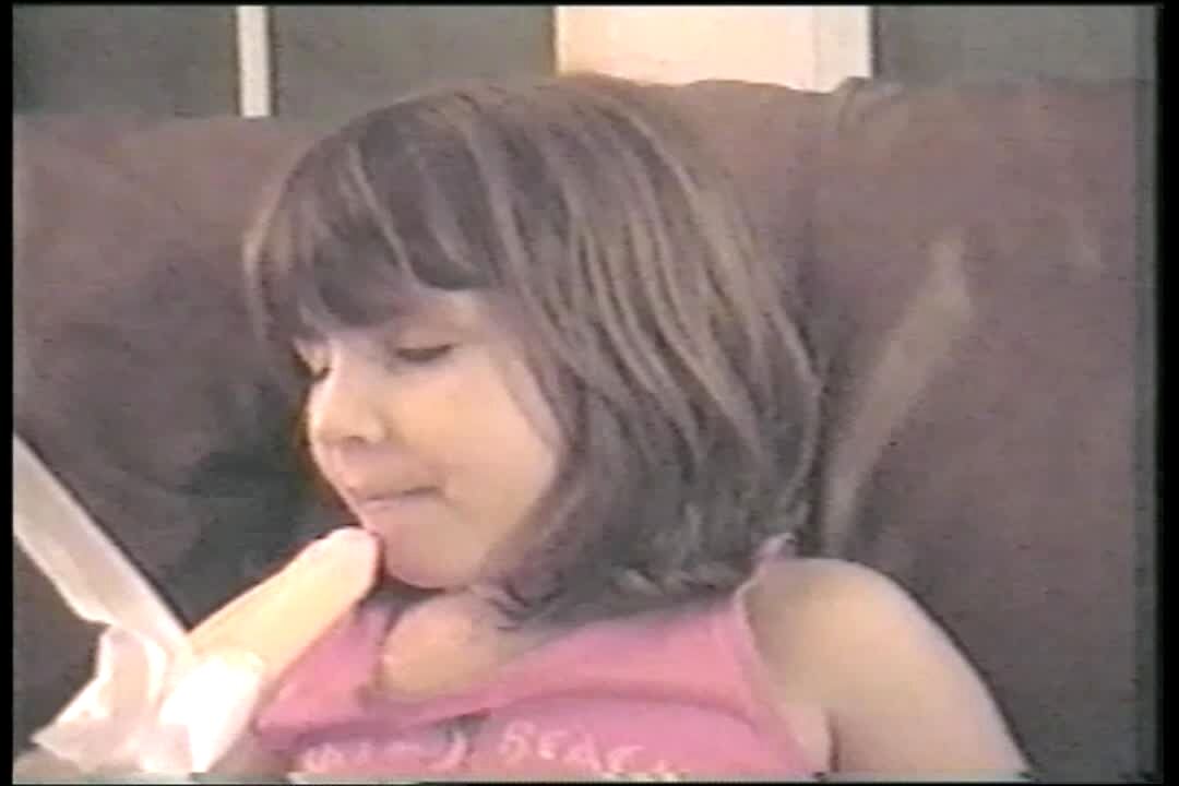 AA: ICE CREAM. Girl eating popsicle has ice cream fall off stick, reacts.