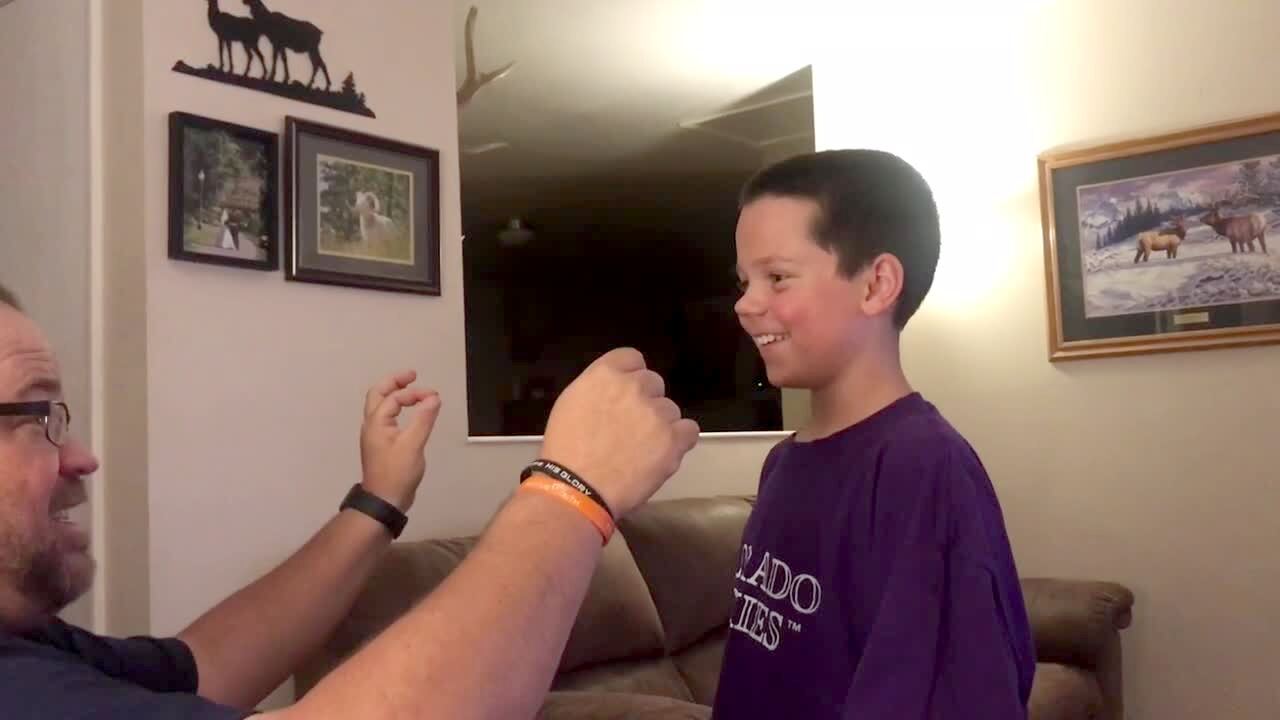 A boy opens Christmas Presents. He opens a box of "Eye Pads". His father laughs off camera. The Boy is not happy.