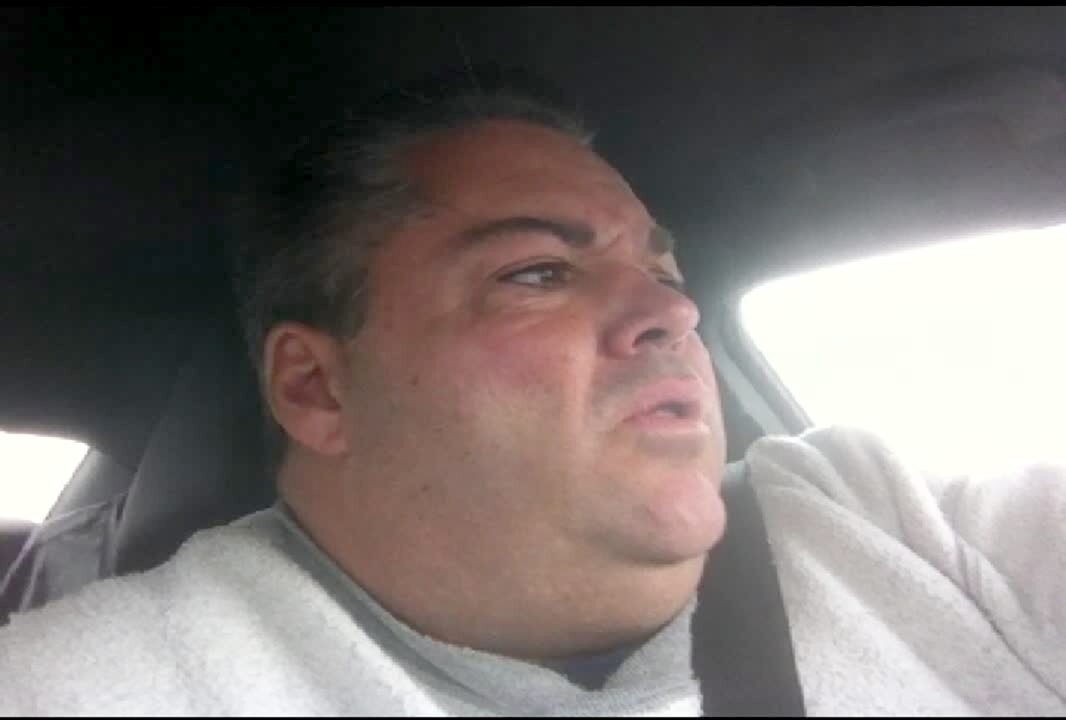 A man in a car prank calls a podiatrist saying that he has a big toe and needs a "toe" truck while the doctor on the other end says "Oh, you're a jerk-off."
