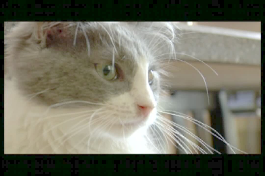Hyper dog keeps jumping up to look at cat sitting on the counter. Dog's head keeps popping into camera frame.