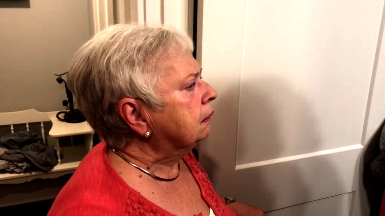 Two teen boys wrestle on trampoline in back yard, frame of trampoline snaps.