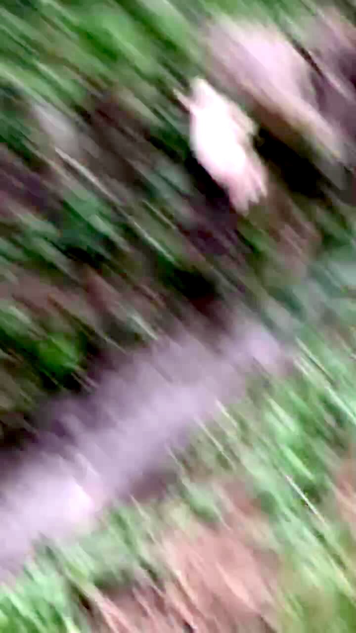 A man splits logs when a piece of wood flies off and hits a second man in the groin. Security footage.