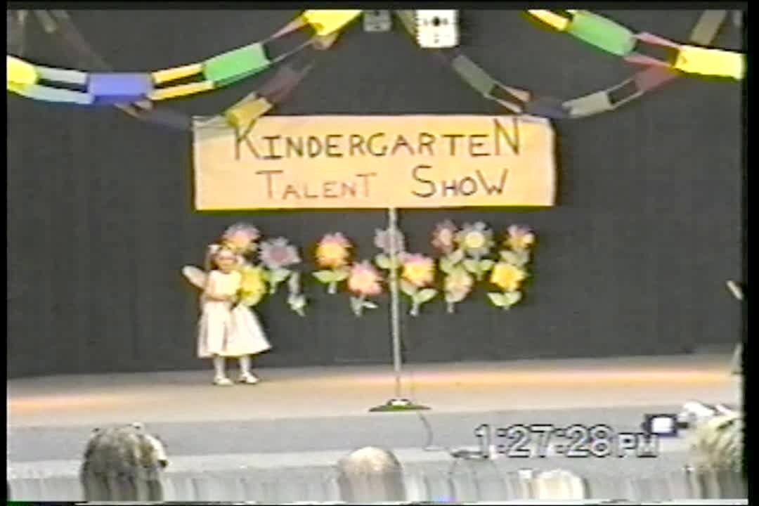 Kindergarten Talent show. Young girl comes out dressed as a fairy with wings and nun chucks. She waves them around and then leaves the stage. Karate