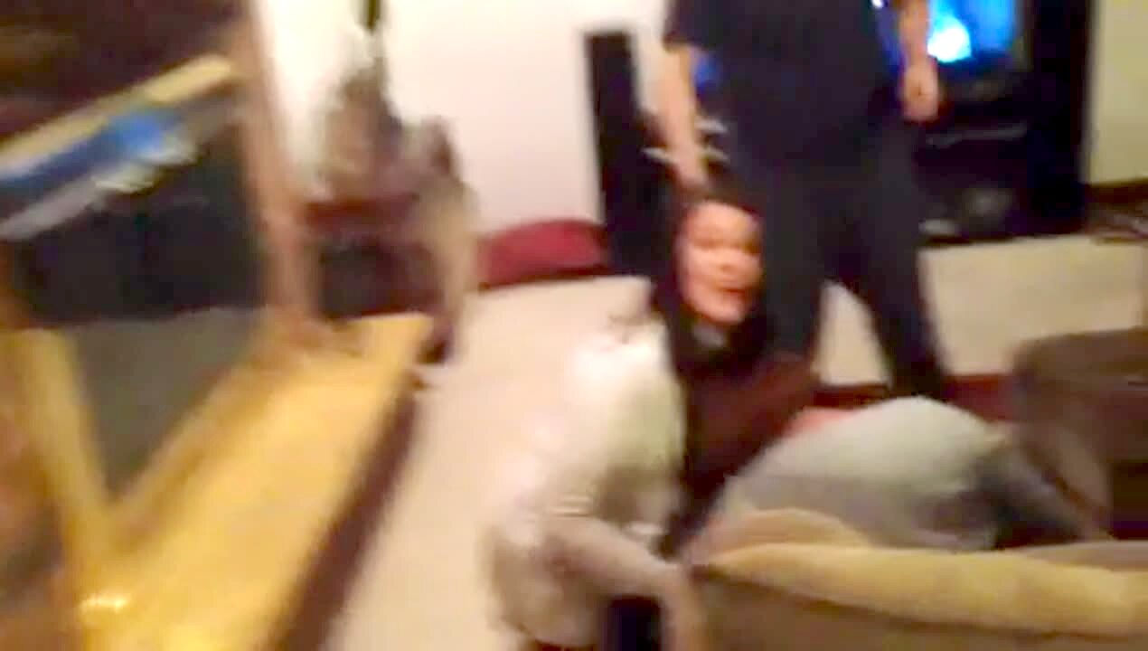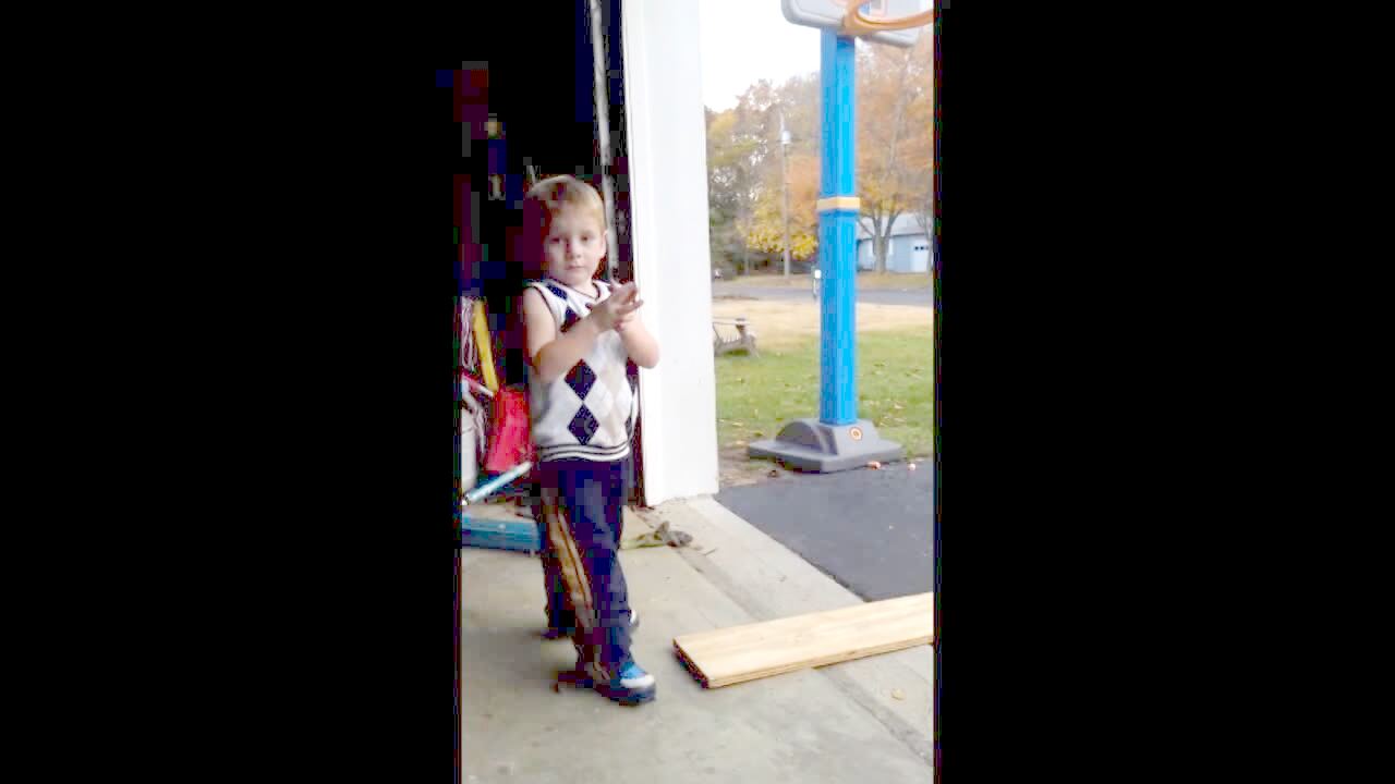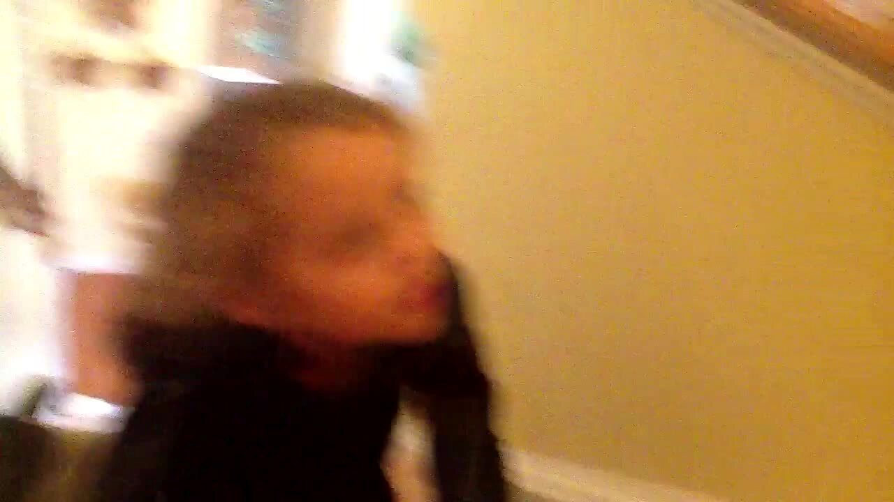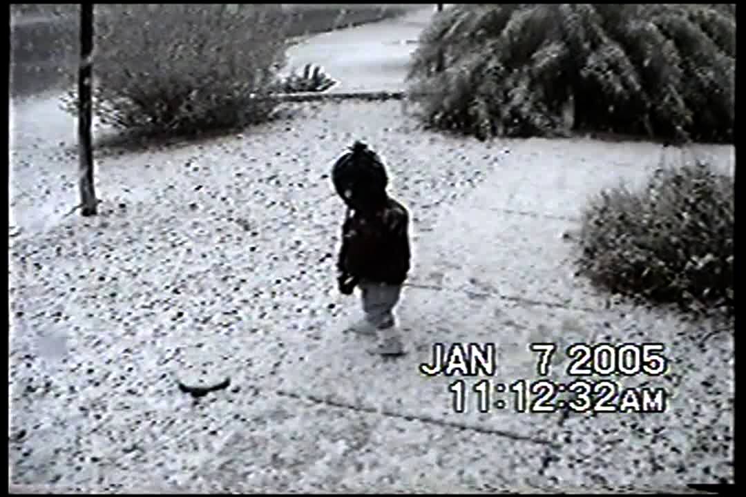 Tot boy walks around in his 1st snow storm in Las Vegas. Mom falls into frame & hits the back of her head hard on slippery driveway. Woman cries. No recovery. Ice. Winter.