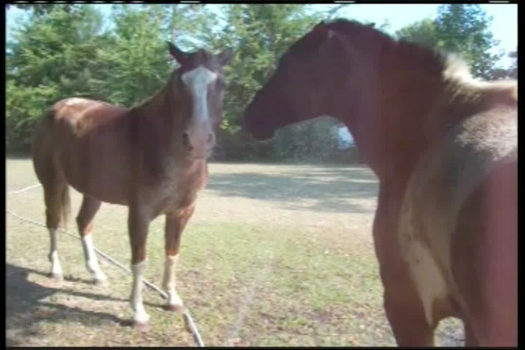 Horse's mouth looks really funny/ weird when he drinks from hose/ sprinkler. Strange pets