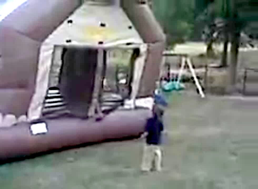 Boy flips off trampoline and lands awkwardly on his back *no tail room* No recovery-good fall